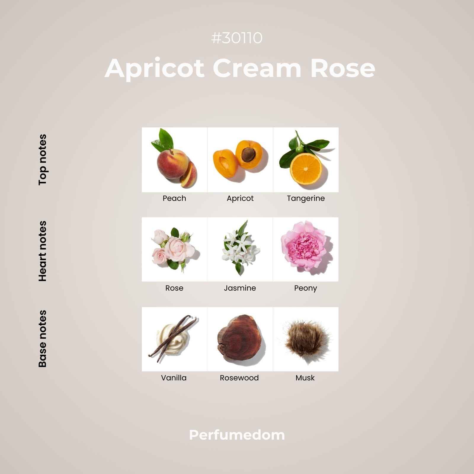 Apricot Cream Rose Fragrance Oil is an elegant and fresh floral scent with opening notes of juicy tangerine, peach and apricot, leading to a flourishing heart of damask rose, jasmine and peony. This sunny composition is wrapped in a base of precious woods, vanilla and white musk.