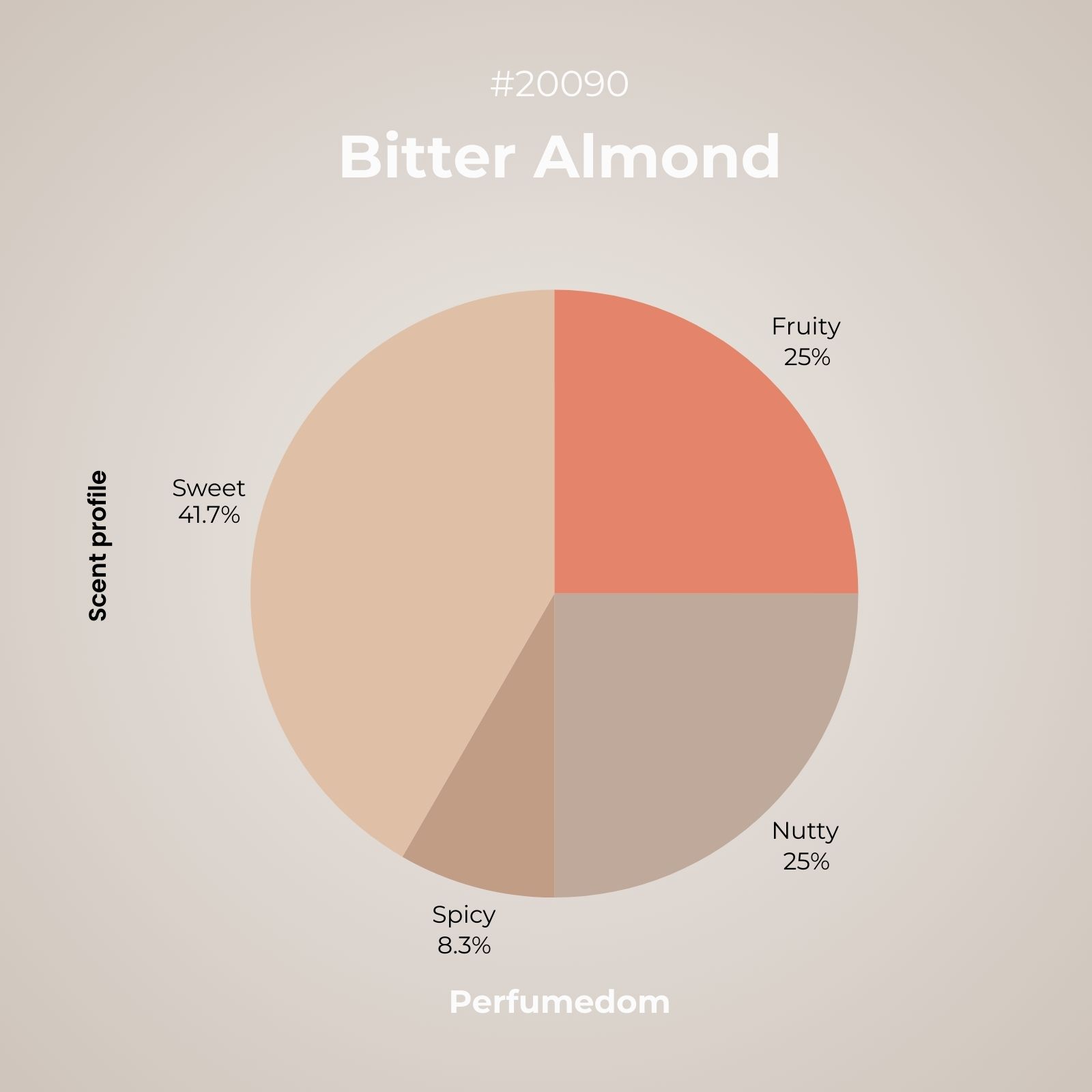 Bitter Almond Fragrance Oil is an intoxicating fragrance inspired by the famous Italian amaretto, which in smell is nothing but bitter, on the contrary, it is enchantingly sweet, sleek and luxurious. Playful top notes of cherry and apricot make a brief introduction to the primary notes of bitter almond and nutmeg which dominate the heart as well the base of the blend along with a hint of vanilla.