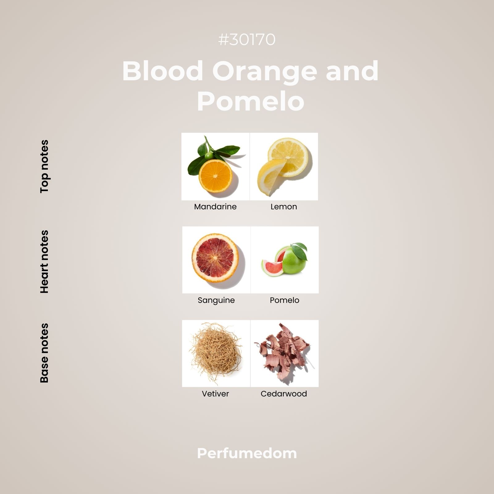 Blood Orange and Pomelo Fragrance Oil is a clean and sunny all-citrus mix of sanguine blood orange, pomelo, mandarin and lemon peel with a touch of earthy vetiver and warm cedarwood. This bright combination brings out the best of the citrus family in a balanced and smooth fragrance.