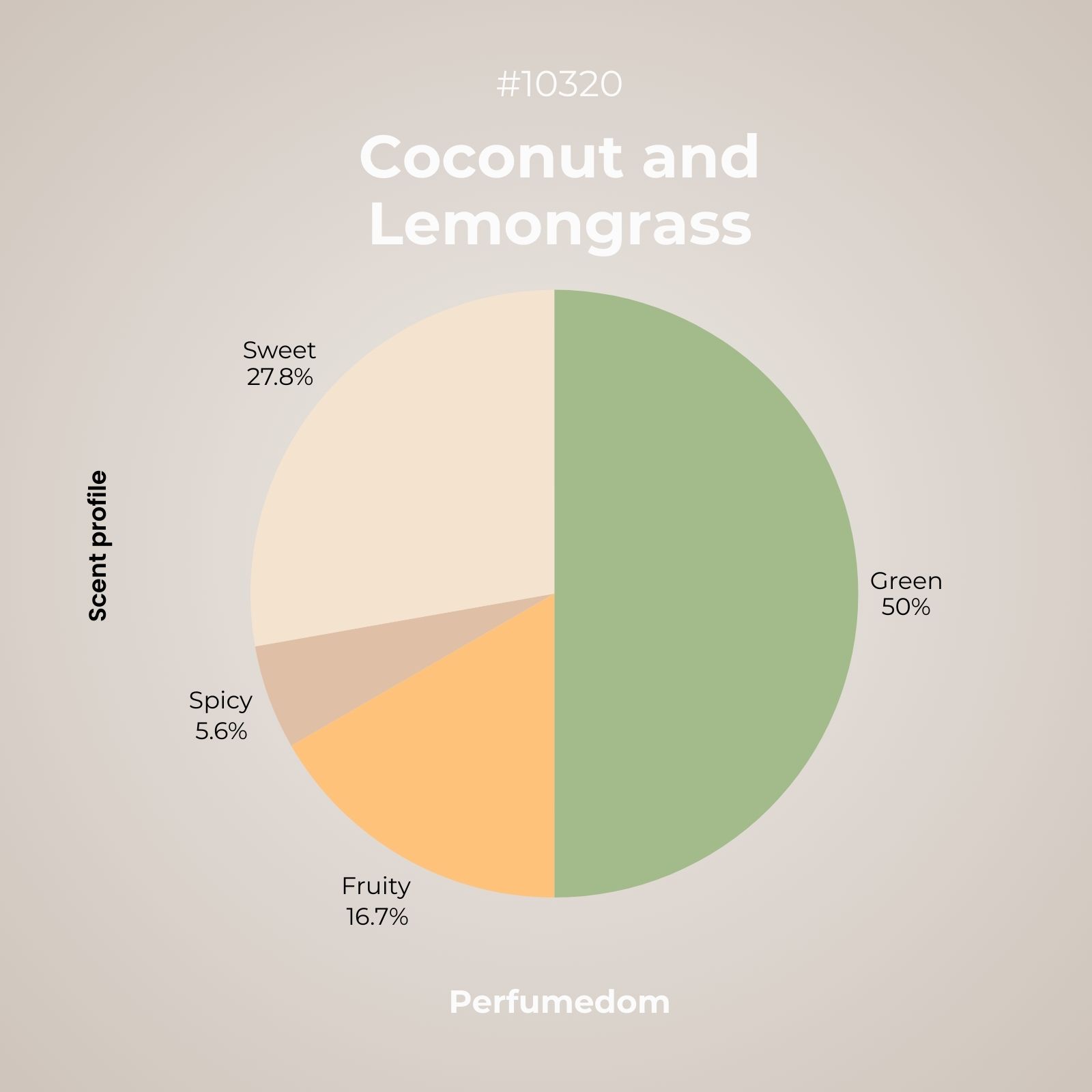 Coconut and green harmonize perfectly. For those who love a unique twist to the usual coconut scent