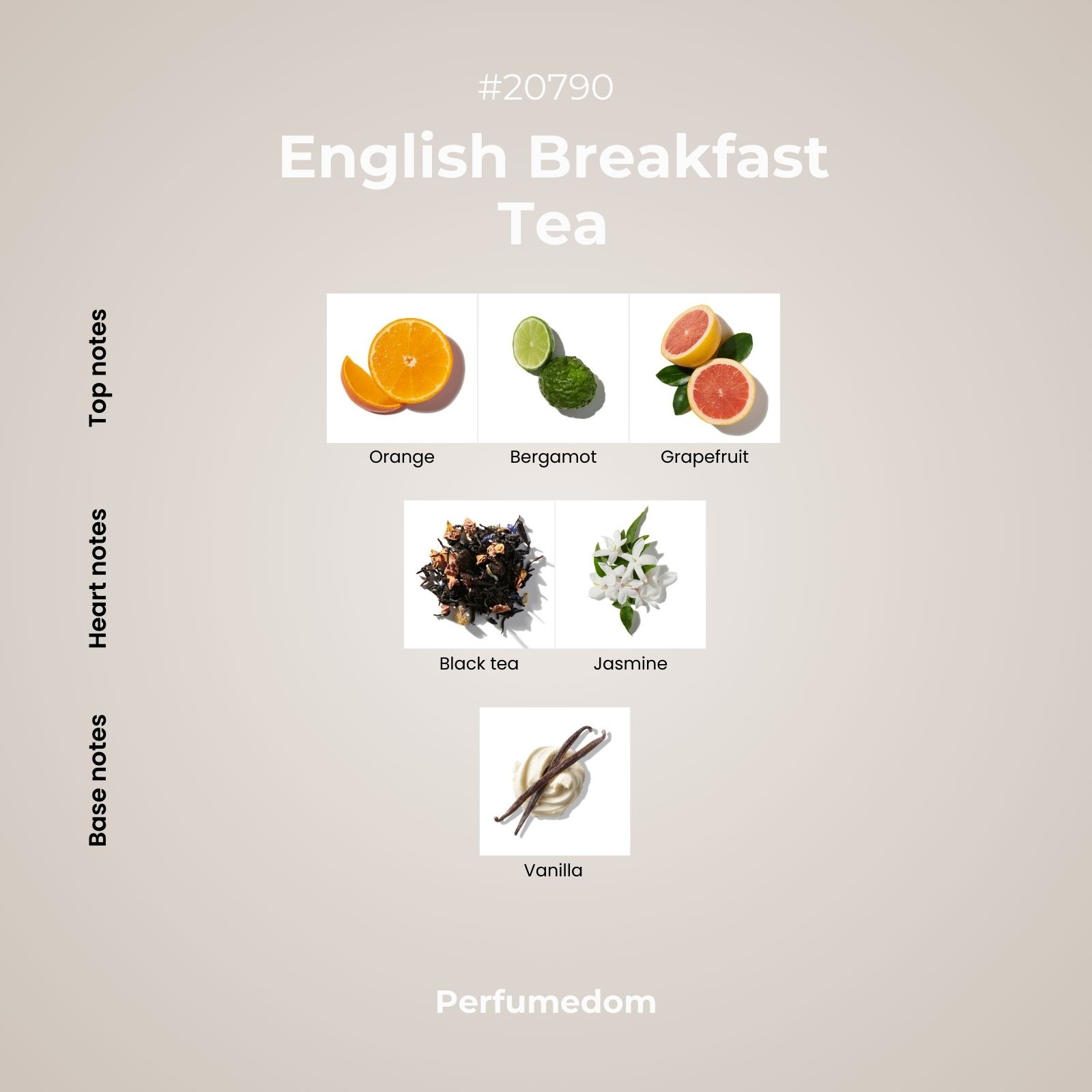 English Breakfast Tea Fragrance Oil is a scentful homage to the quintessential English tea experience infused with the uplifting essenses of bergamot, orange, and grapefruit, the delicate aromas of jasmine petals and black tea leaves, along with a gentle creamy finish. An invigorating scent for those looking for a sophisticated olfactory journey, reminiscent of a tea time ritual.