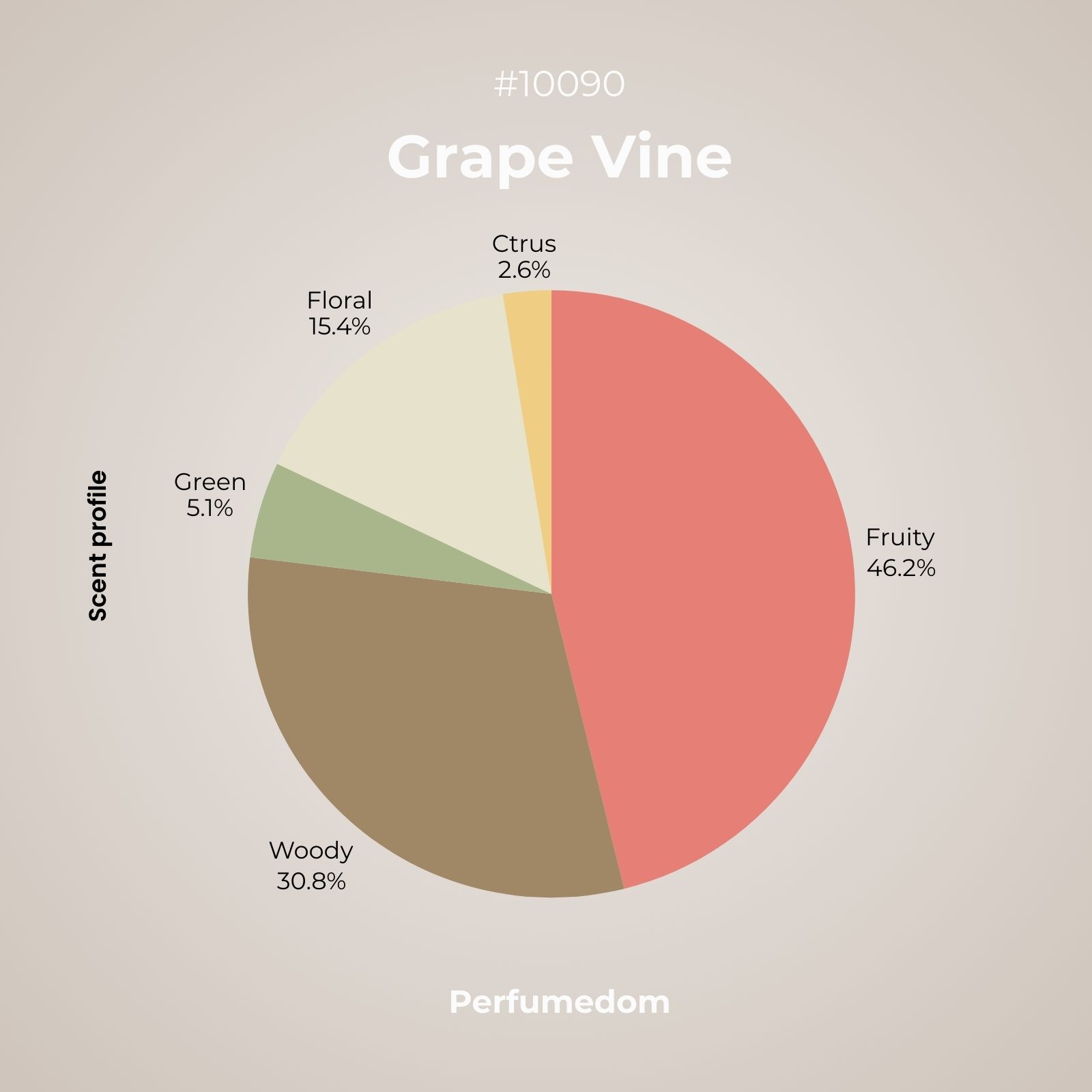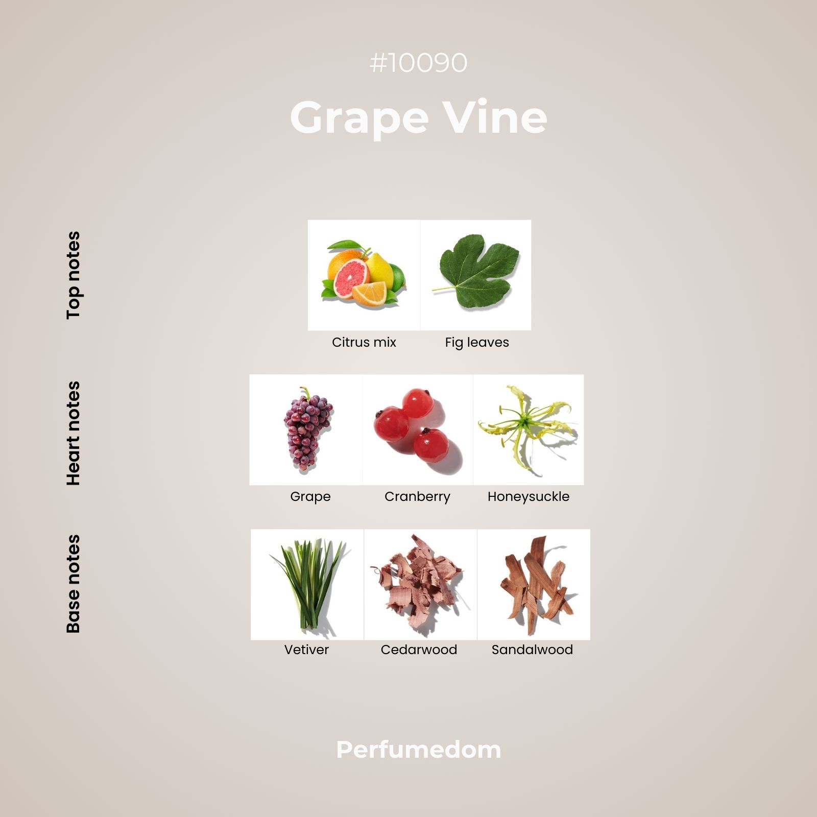 Grape Vine Fragance Oil is a ripe fruity/woody composition with citrus top notes and a tart heart of fully grown grapes, berries, figs and honeysuckle. Far from a candy-like scent, it captures the authentic, earthy elegance of a stroll through a French vineyard, eventually settling into a grounding foundation of dry cedarwood, sandalwood, and vetiver.