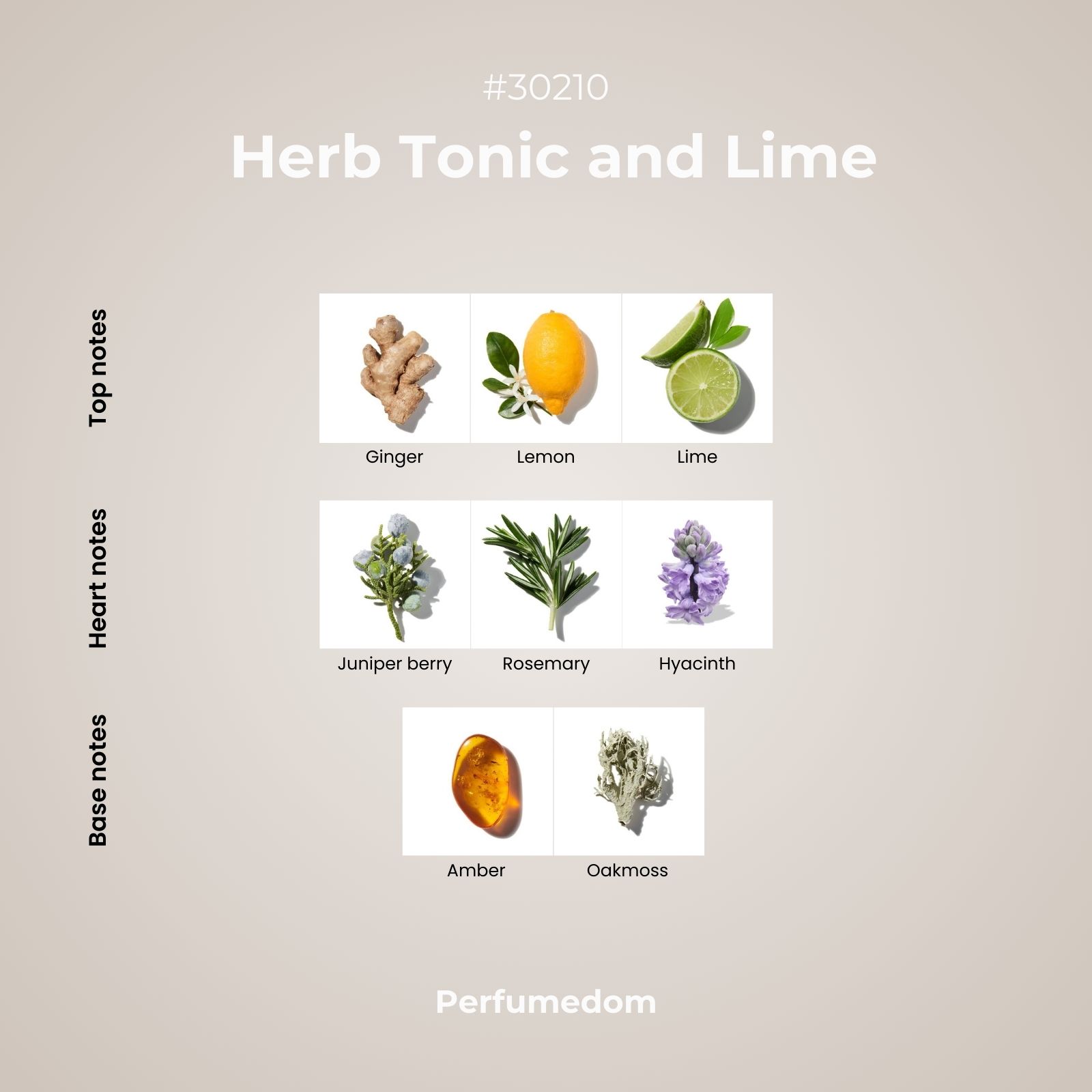 Herb Tonic and Lime Fragrance Oil is a fizzy herbaceous accord of rosemary, water hyacynth and juniper berry with top notes of ginger, lemon and lime. This bright and refreshing sparkling water composition is balanced with a light amber and oakmoss base.