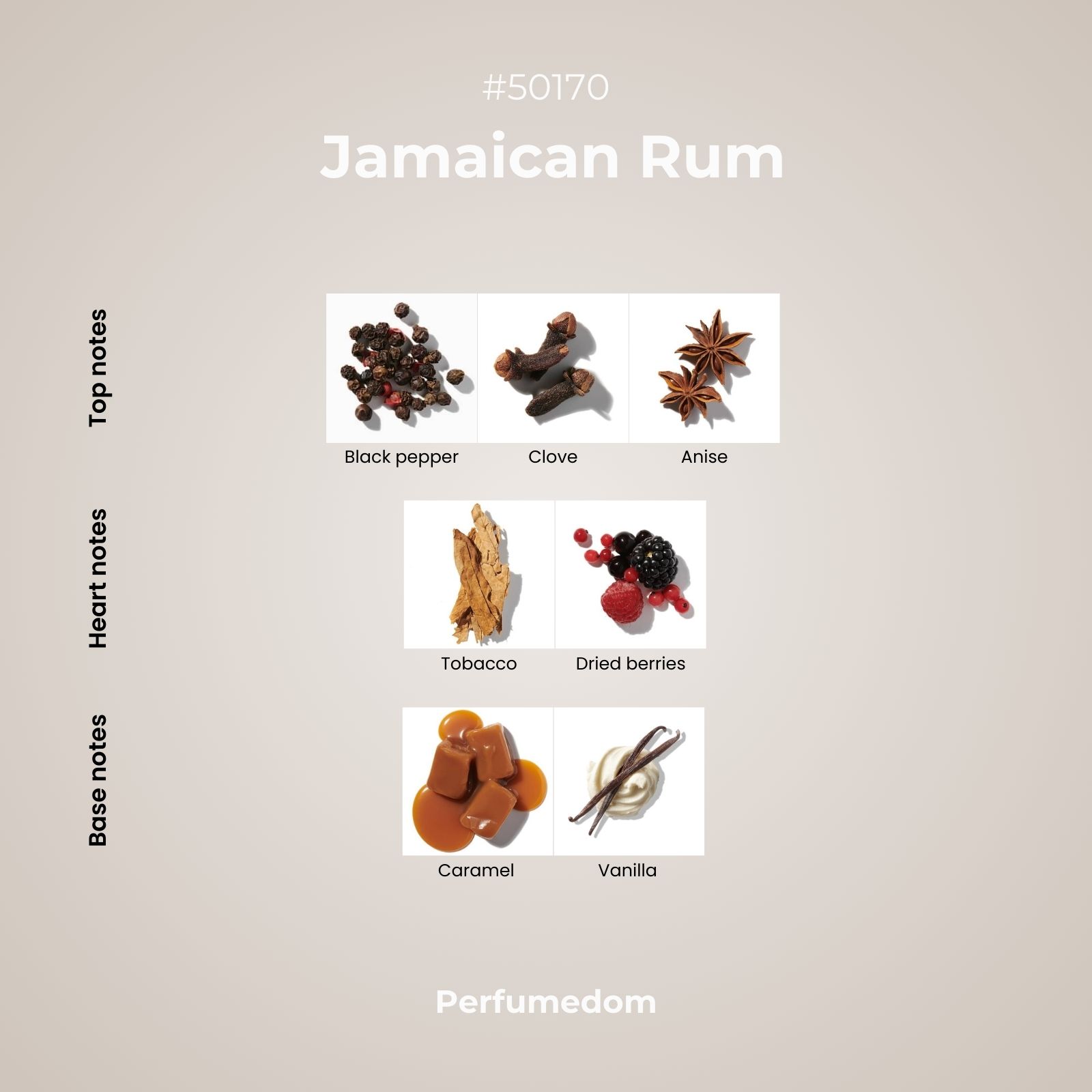 Jamaican Rum Fragrance Oil is an earthy/sweet combination of caramel, berries and spices, almost intoxicating and irresistible as a scent. The fragrance opens with a spice kick of clove, anise, and white pepper, followed immediately by a rich dark fruit mix of blackberries, raspberries and tobacco, before resting on a warm base of caramel and vanilla.