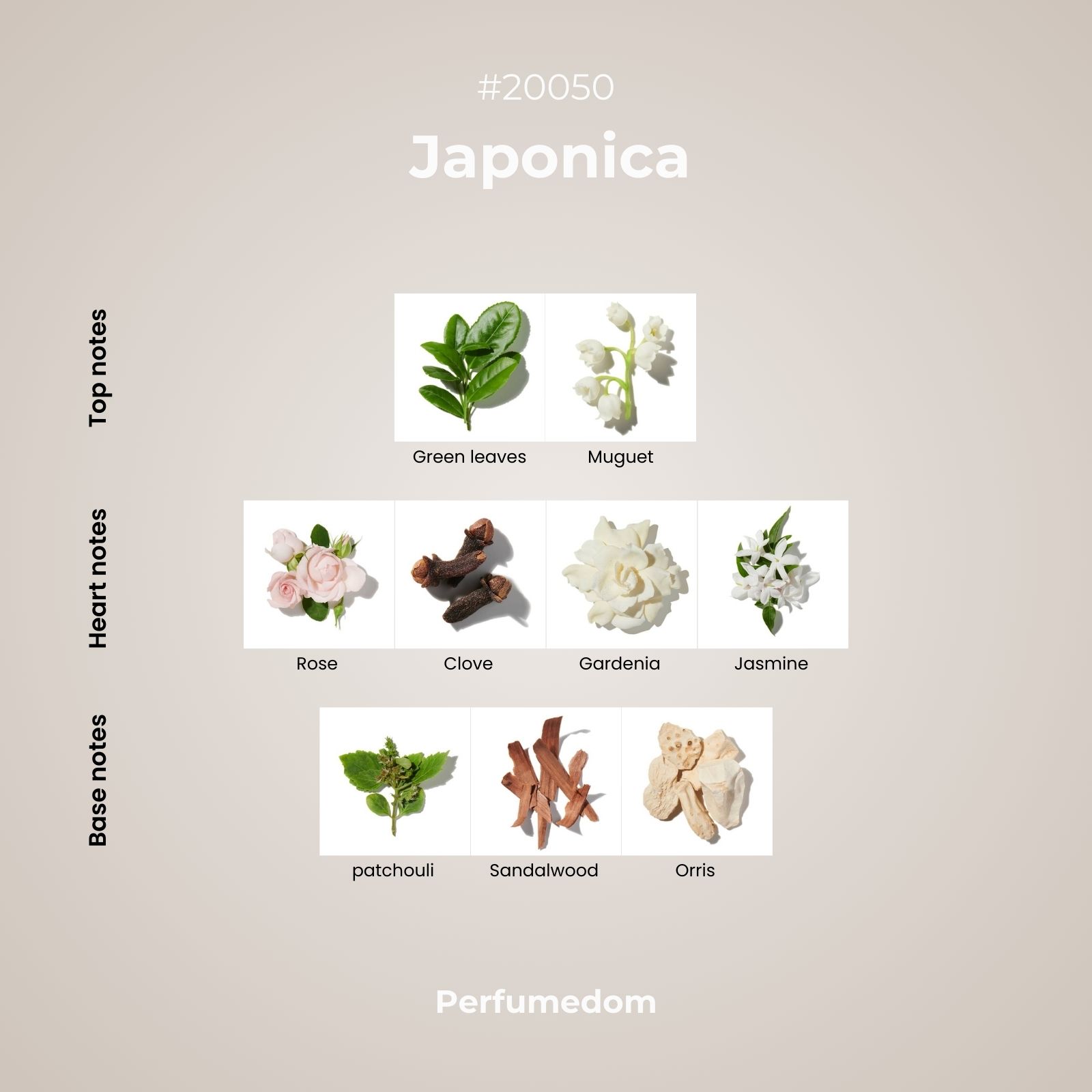 Japonica Fragrance Oil is an aethereal blend where a fresh green/aldehydic accord opens the fragrance, supported by a bright floriental heart of rose, jasmine, lily of the valley, gardenia and clove. The fragrance is then eased off on a sensual base of patchouli, sandalwood, orris and amber.
