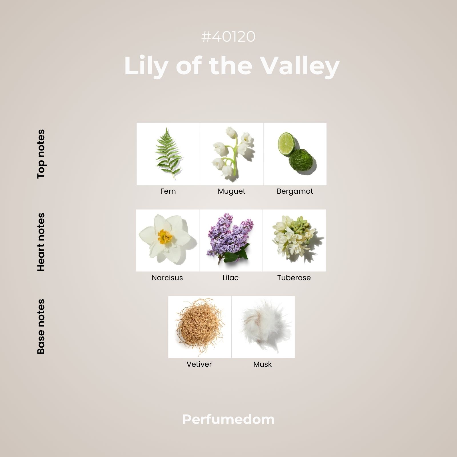 Lily of the Valley fragrance oil is a delicate and blissful scent that embodies the beauty of nature with a perfect balance of green, floral and musky notes. With subtle top notes of fern, bergamot and lily of the valley, an intoxicating all floral heart of lilac, narcissus and tuberose and a woody-musky accord of vetiver and white musk at its base, this miguet sensation is bound to captivate the senses.