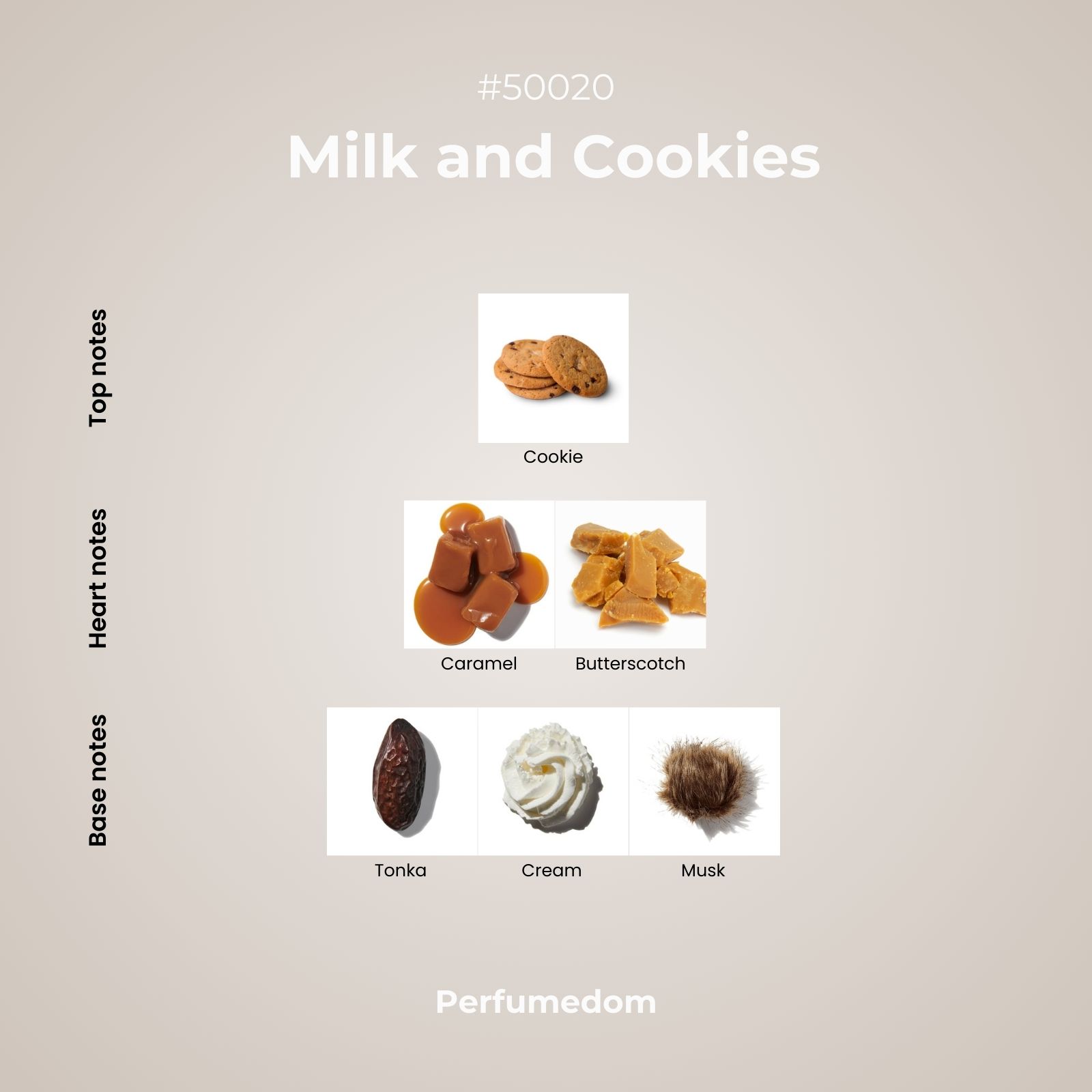 Milk and Cookies Fragrance Oil is a truly delicious pastry experience where the buttery aroma of freshly baked cookies entices the senses! The heart of the fragrance is dominated by brown sugar caramel and the entire composition is anchored on a super creamy base of vanilla and tonka with a hint of musk.