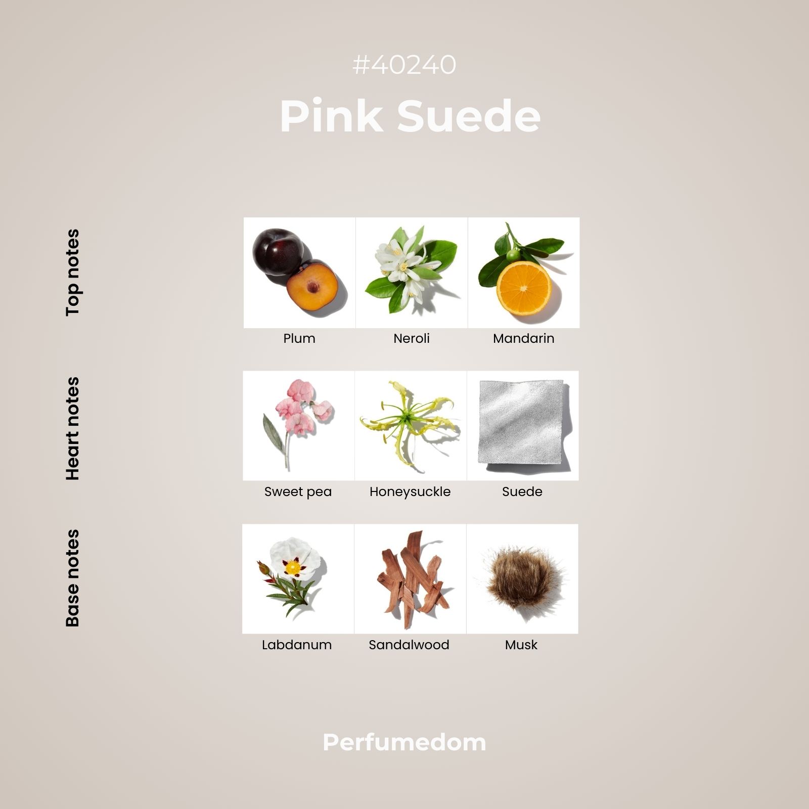 Pink Suede Fragrance Oil is an elegant woody/leathery composition with playful top notes of mandarin, plum and orange flower. At the heart of the blend lies a soft floral accord of honeysuckle, suede leather and sweet pea, while powdery musk, labdanum and warm sandalwood undertones complete this ultra chic fragrance.