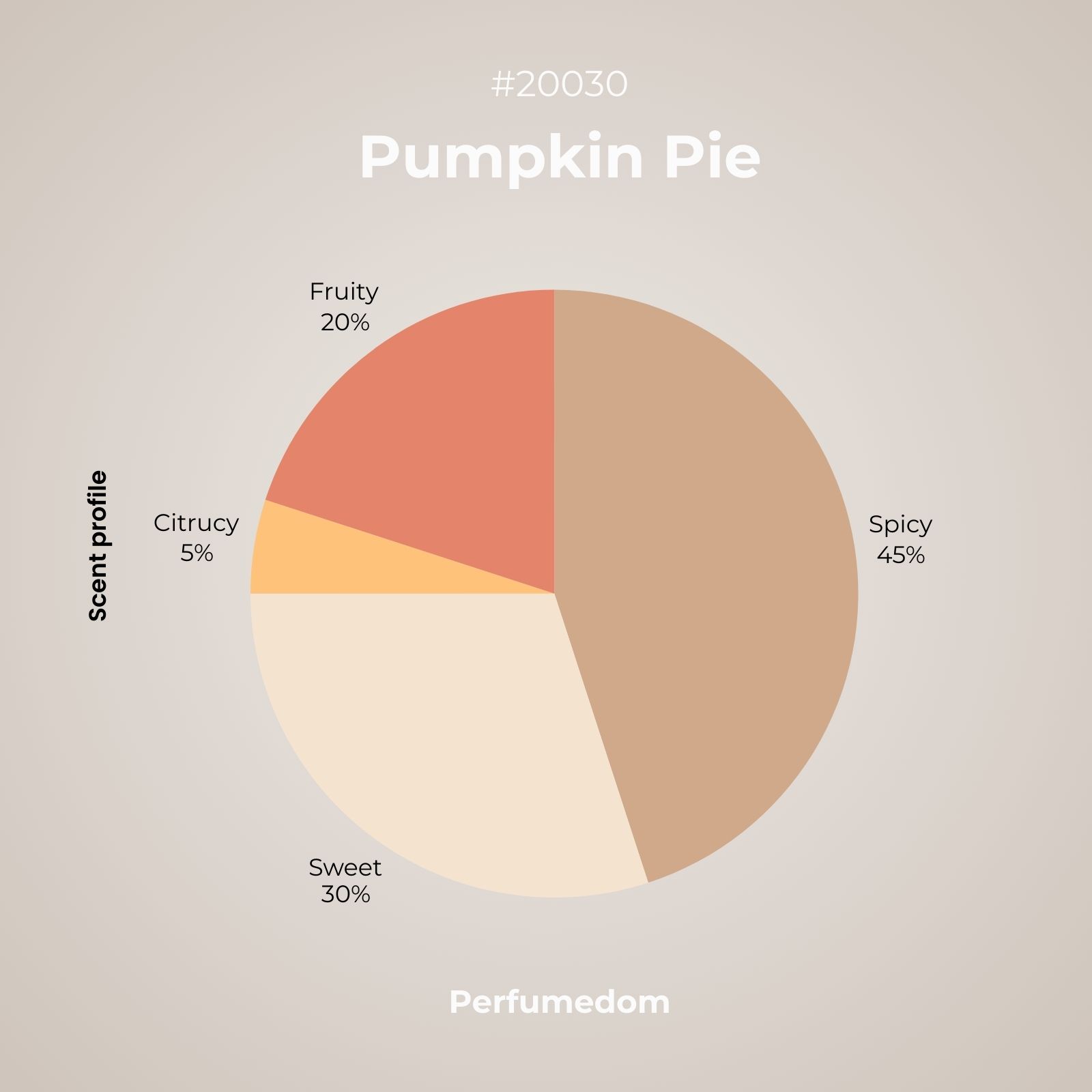 Pumpkin Pie Fragrance Oil is a gourmand blend of orange and clove at the top, followed by a delicious fruit combo of apple, plum and pumpkin, accompanied by nutmeg and cinnamon. A base of soft woods, chestnut and a touch of sweet vanilla completes this seasonal fragrance.