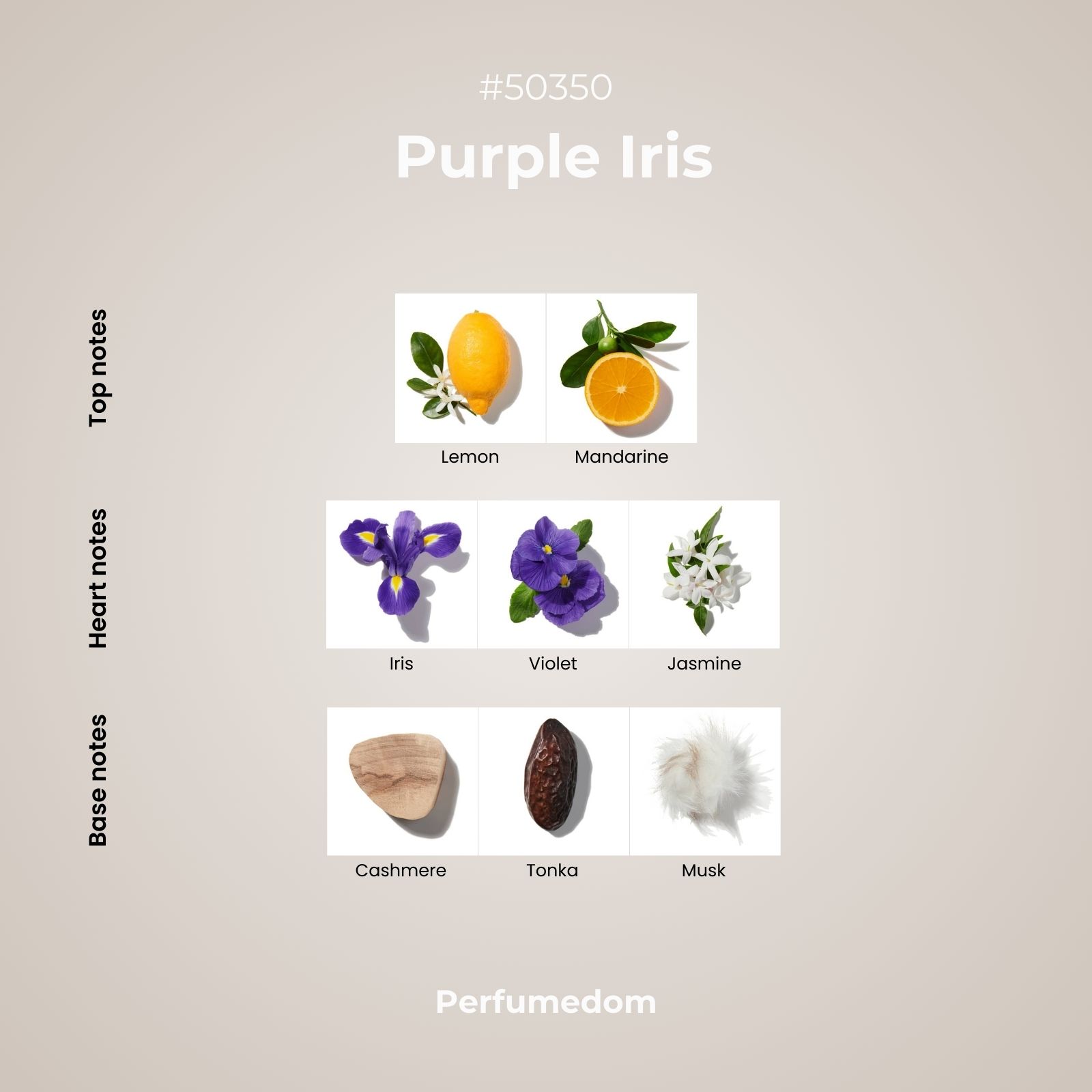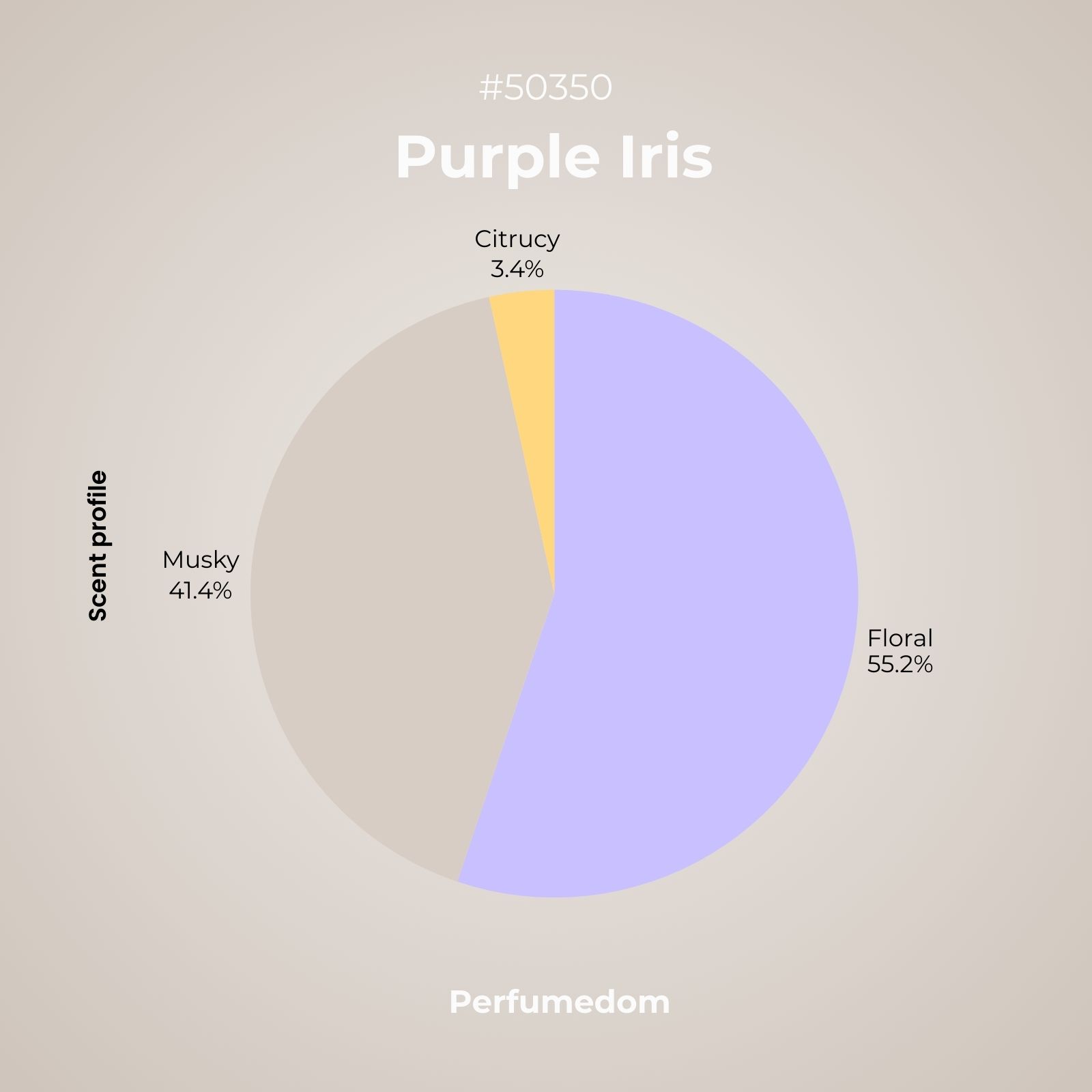Purple Iris Fragrance Oil is an elegant, musky floral blend that captivates with its powdery richness and refined depth. Zesty lemon and mandarin sparkle at the top before melting into a lush and sensuous heart of iris, violet, and jasmine. The base lingers in a cocoon of warm cashmere, sweet tonka, and soft musk, evoking the luxurious scent of a silk scarf steeped in fine perfume. A sophisticated choice for truly opulent scented creations.