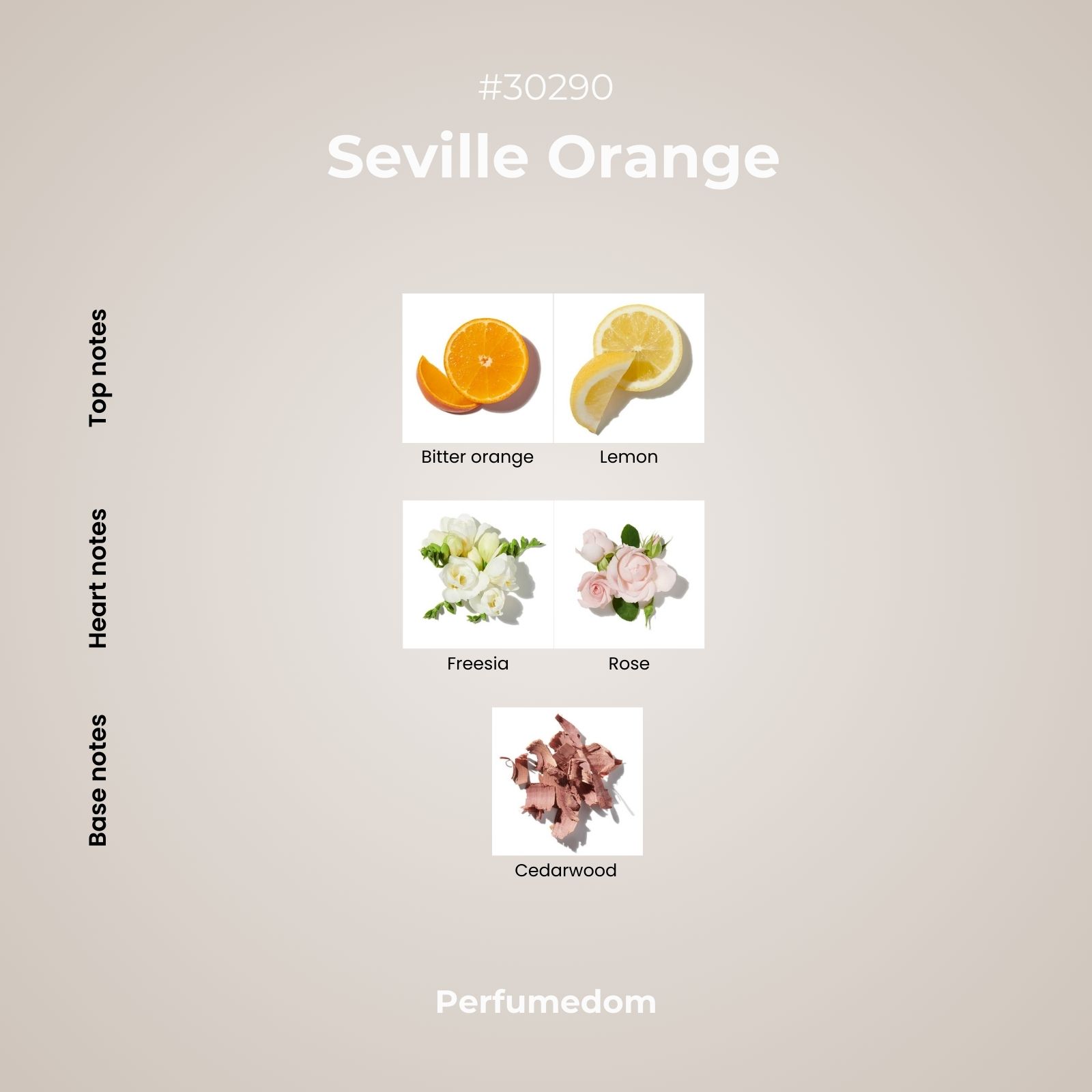 Seville Orange Fragrance Oil is a luminous citrus symphony of bittersweet Seville orange accompanied with warmed lemon rind bringing this bright scent into a perfect equilibrium along with a light floral chypre of rose and freesia at its heart and cedarwood at its base.