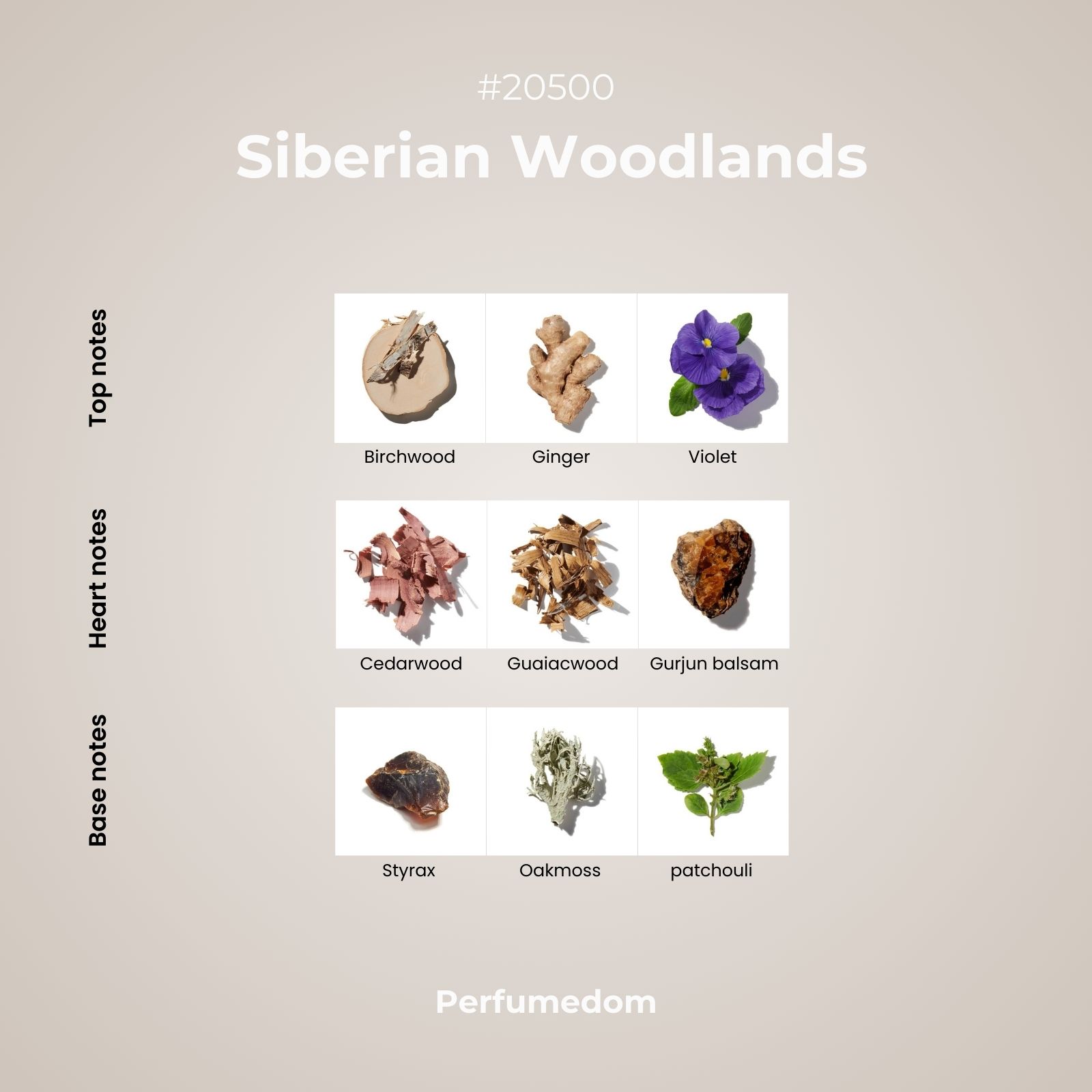 Siberian Woodlands fragrance oil is a woody/coniferous fragrance, cool as a winter forest breeze. An aldehydic accord of birchwood, violet and earty-roots first greet the nose, exposing a magnificent woody heart of cedarwood, gurjun balsam and guaiacwood. All resting on an graceful ambery base of styrax (benzoin), oakmoss and patchouli.