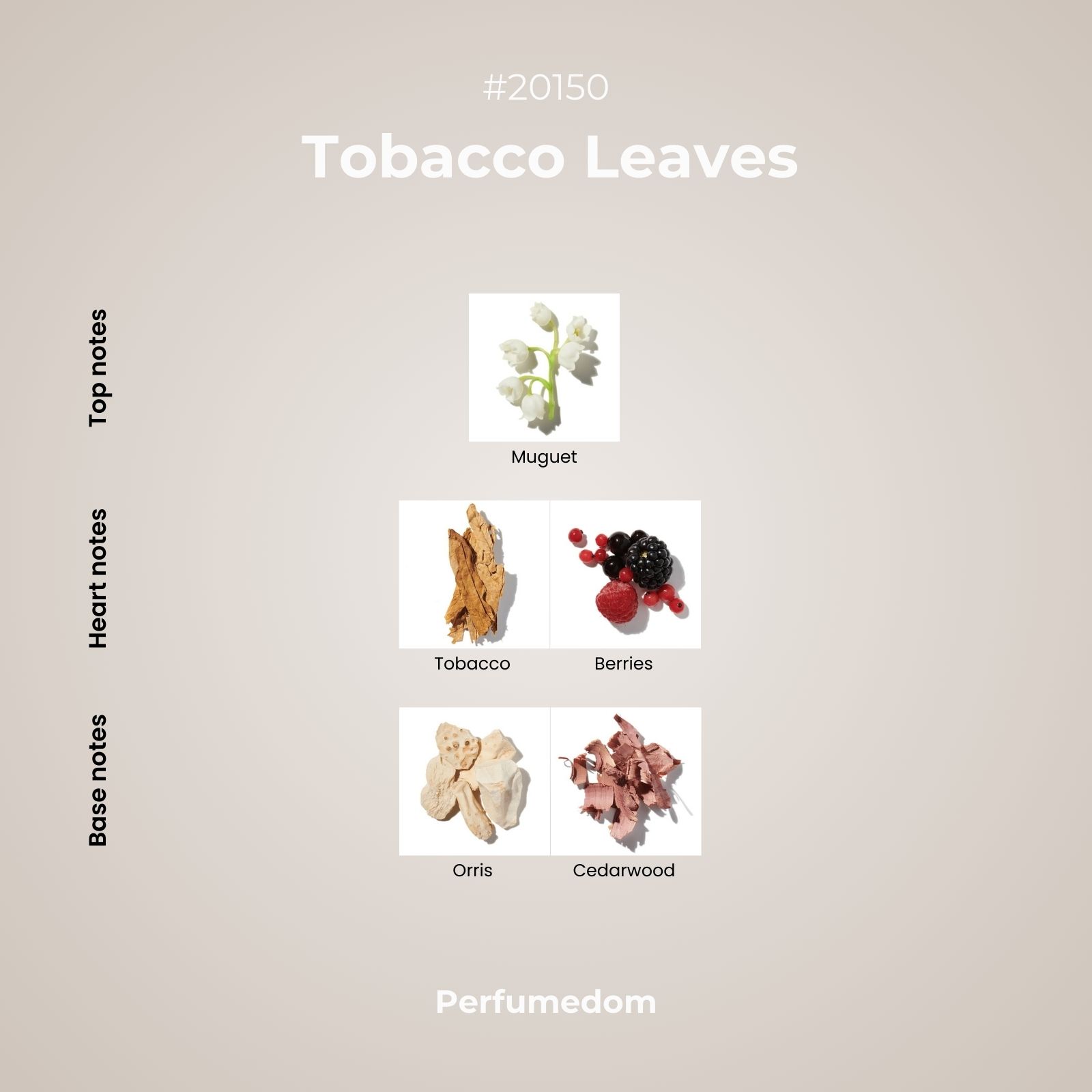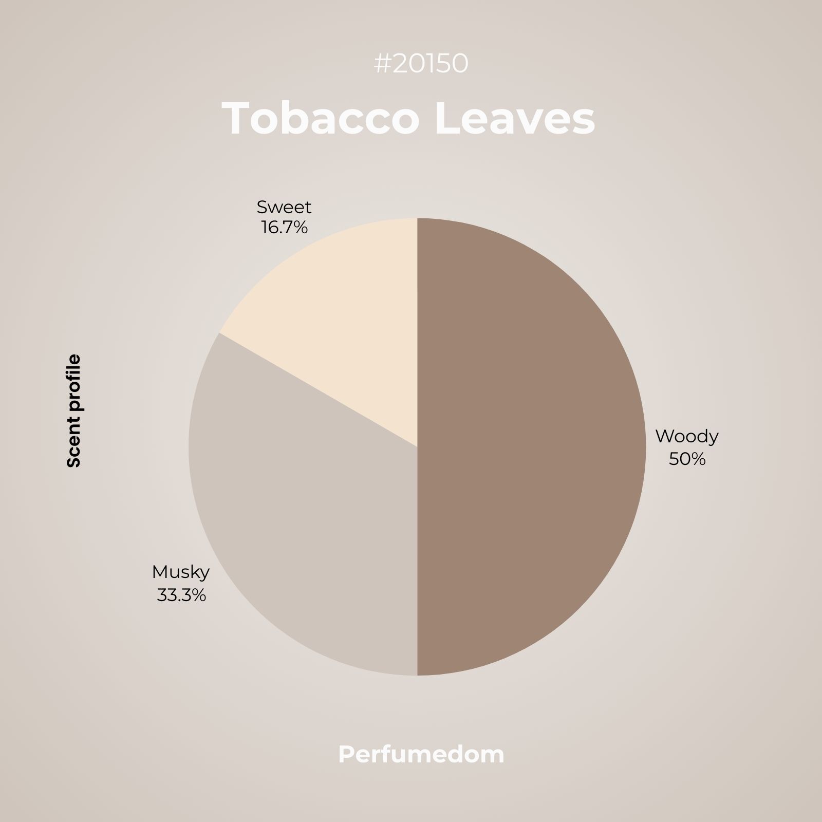 Tobacco Leaves Fragrance Oil is an indulgent blend of pure and unrefined tobacco with a lovely muguet nuance at the top and ripe, balsamic undertones of dried raisins on a red cedarwood and orris root base. A sophisticated, moody blend that balances earthy depth with subtle sweetness.
