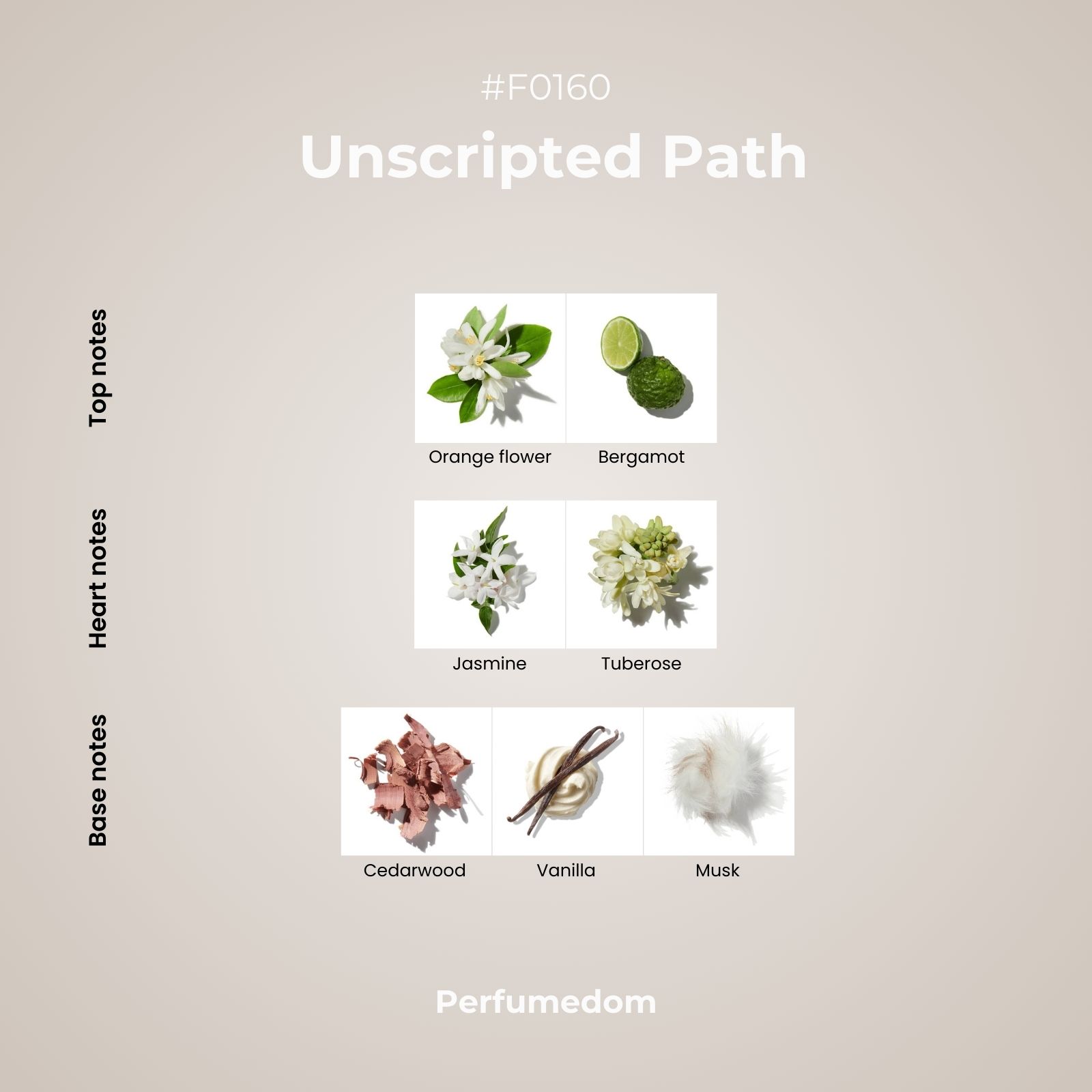 Unscripted Path Perfume Oil is a joyful floral blend that opens with orange blossom and bergamot before unfolding into a creamy heart of tuberose and jasmine. The base reveals soft vanilla, white musk, and cedar, creating a warm, elegant harmony. Perfect for crafting feminine candles, delicate diffusers, or refined body care blends that convey purity, sophistication, and modern grace.