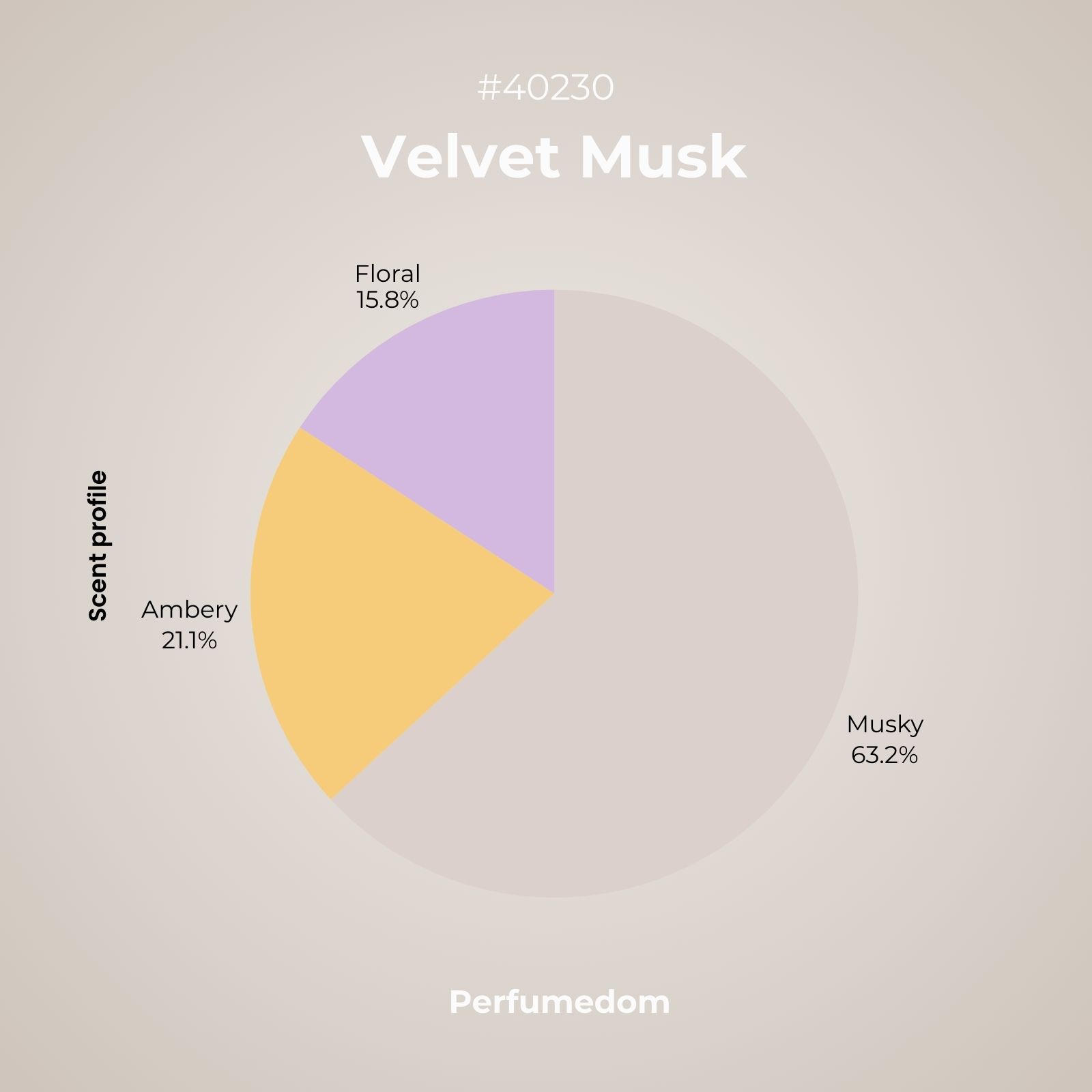 Velvet Musk Fragrance Oil is a sleek and luxurious white musk fragrance accompanied by a soothing accord of white and colored florals of jasmine, violet, and rose. On the base of the blend lies a velvety mix of white musk and amber.